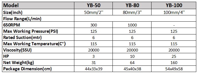 YB series self priming rotary vane pump with internal by-pass valve. The pumps use a rotor with sliding vanes to draw the liquid. The material of construction is nodular iron with sliding vanes built in a special self lubricating material. Due to its efficiency the pumps can handle viscous and also volatile liquids and require less horsepower than other equivalent pumps. The pumps are capable of higher flow-rates at lower number of revolutions than other designs.